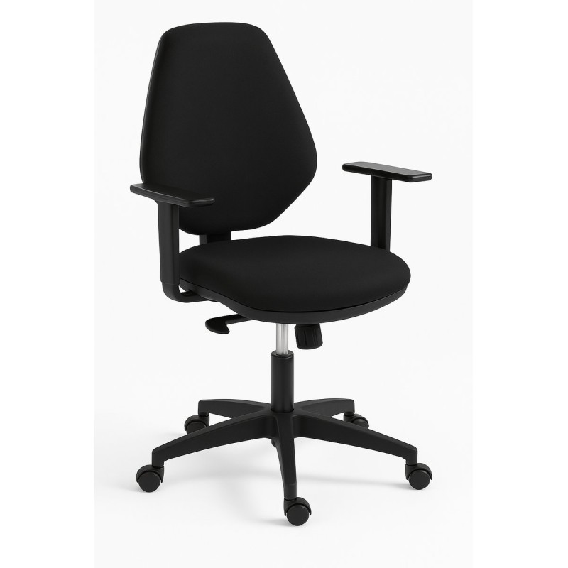Chaise pivotante ergonomique avec accoudoirs réglables haute hauteur du dossier en couleur noire. Idéale pour une utilisation dans un fauteuil de bureau, étude, écoles, etc. Chaise rembourrée en bleu, noir, rouge et gris. Base en polypropylène de couleur noire. Voir l'option chauffeuse chaise. Livraison en 10 jours dans toute l'Europe