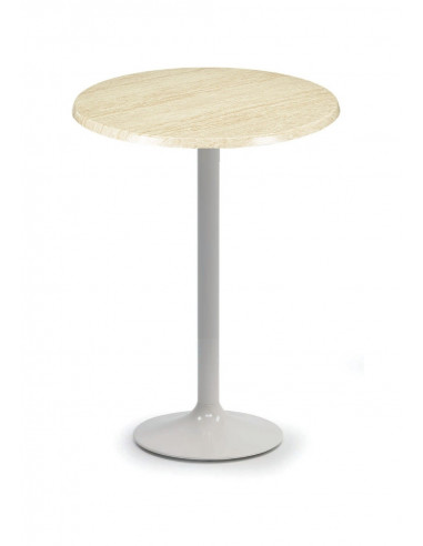 Table haute de bar pour tabouret prime. La table haute peut être utilisé en intérieur et en extérieur sous couvert. Table haute formé par un pied colonne blanc et un plateau en werzalit de diamètre 60 cm en différentes couleurs. Tableau moderne qui s'adapte à de nombreux environnements et en même temps très économique.