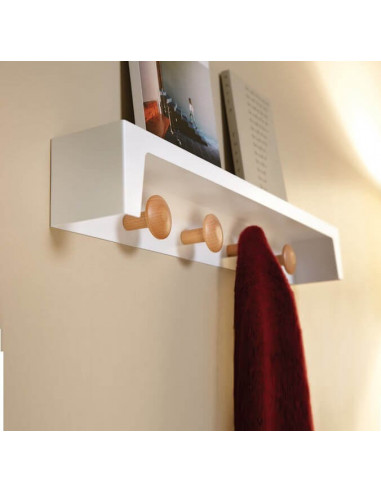 L'attaccapanni con mensola di design in colori divertenti e finiture nobili. Si può appendere i vestiti in 4 grucce di legno e si dispone di un ripiano in alto per oggetti di piccole dimensioni (le tasche vuote, chiavi, etc.), o anche una scatola. La sua cima piatta offre una miriade di opzioni. Prodotti in lamiera e legno.