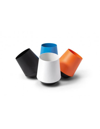 Riciclare ufficio e scrivania in polipropilene molto divertente. La sua base è sferica permette di essere in movimento. Diversi colori disponibili. Capacità cestino: 17 litri.