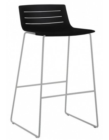 Sgabello di design con linee eleganti, un gioco con le sedie. Possibilità di dotare i ristoranti, i bar, i caffè, i negozi, o per la decorazione di interni. Sgabello impilabile per le strutture e per il contract. Custodia in vari colori iniettato in fibra di vetro e Polipropilene. Struttura in acciaio bastone, bianco o cromato.