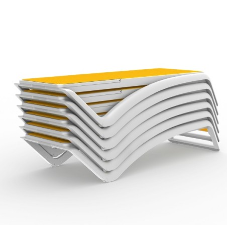 Lettino impilabile, per uso interno ed esterno. Struttura in polipropilene rinforzato con fibra di vetro. Textilene 500 gr/m2, busta termosaldata per una maggiore resistenza. Reclinabile in 5 posizioni, tra cui la posizione-design sottile ideale per sdraiarsi a faccia in giù. Torna al top della sicurezza. Ruote posteriori e morsetti scorrevoli sul lato anteriore e posteriore.