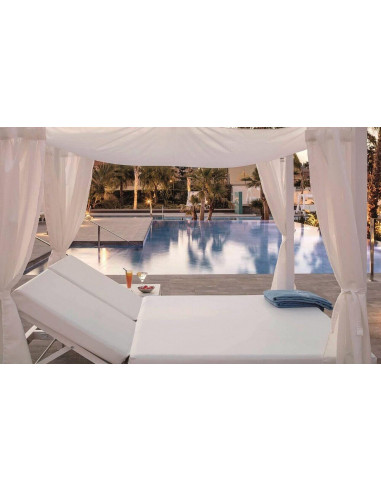 Letto balinese con struttura in legno e materasso in tessuto nautico. Ideale per giardini, piscine o esercizi di risto