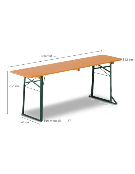 Tabella di misurazione 220x69cm e 2 banche di 220x25cm. La tabella altezza 77,5 cm