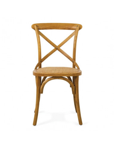 Materiale: Legno massello di olmo, finitura noce con seduta in rattan naturale.