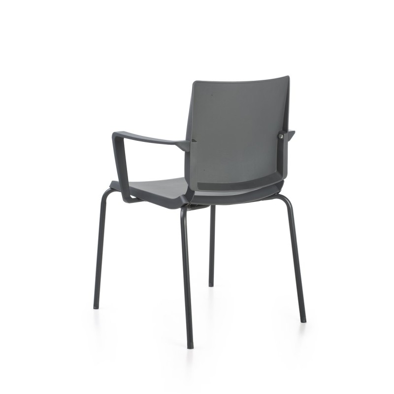 Sedia di design multi-purpose di 4 piedi con braccioli, struttura in metallo con finitura cromata. Sedile e schienale in polipropilene, disponibile in vari colori. Come opzione, il sedile può essere reupholstered. Il design linee pulite, consentire che si adatta in spazi diversi come una sala riunioni, un ufficio o sala da pranzo di un ristorante. Di facile manutenzione.