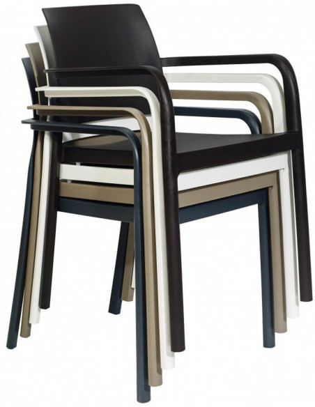 Sedia terrazza che unisce la semplicità, modernità e robustezza. Ideale per equipaggiare le terrazze dell'hotel e i ristoranti, i bar e i ristoranti. Questa sedia terrazza è impilabile e disponibile in diversi colori, molto attuale, che sono adatte per la decorazione di spazi, sia esterni che interni.