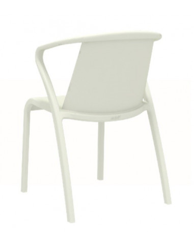 Poltrona impilabile in polipropilene rinforzato con fibra di vetro. Ha un built-in e suola in gomma antiscivolo a 4 zampe. Valido per l'uso all'aperto. Protezione contro i raggi UV.