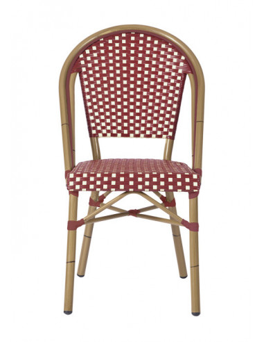 Progetta la tua terrazza con queste sedie in alluminio plastificato. Sono fatti di canna sintetica vergine al 100%, non riciclata e tessuta a mano. Queste sedie aggiungeranno un tocco di eleganza alla vostra terrazza. Disponibile in diversi colori, ideale per vestire il tuo spazio esterno con uno stile parigino.
