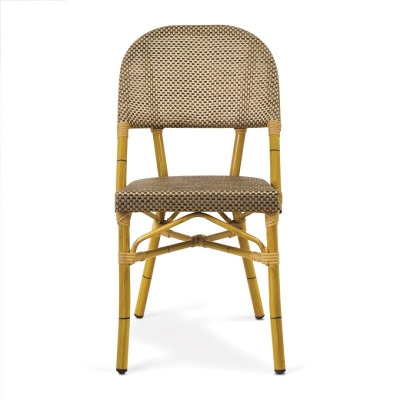 Sedia impilabile, leggera e resistente, progettata appositamente per le terrazze di bar e ristoranti. La sua struttura in alluminio con finitura canna di fucile offre un design elegante e durevole, mentre la seduta e lo schienale in textilene garantiscono comfort e facile manutenzione.