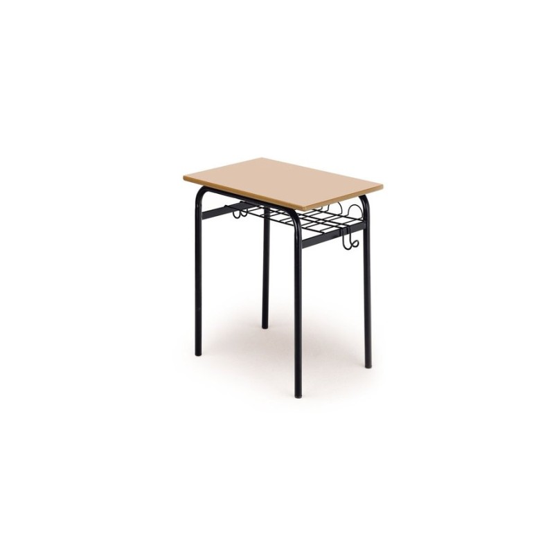 Banco monoposto scuola con struttura in tubo di acciaio, di colore grigio, verde, nero o con il supporto del vassoio di documenti in asta. Top in stratificato in vari colori con bordi in DM o PVC. Misure 60 x 40 cm . Dimensione 3 Dimensione 6 (da 7 a 14 anni e anziani).