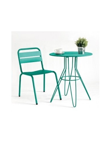 Cadeira de alumínio de estilo mediterraneo. Ideal para exterior, já que a estrutura é fabricada em alumínio. Máxima resistência à corrosão. Acabamento: alumínio lacadado em pó de poliéster (epóxi) em ampla gama de cores muito vivas. Ver, também, sofá, rede e banco para o jogo.