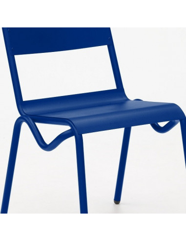 Cadeira de aço galvanizado para fora pintada em epóxi em ampla gama de cores muito vivas. Ver, também, cadeira e banco para o jogo.