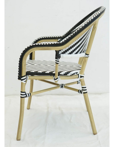 Projete seu terraço com estas poltronas de alumínio plastificado. Fabricadas em rattan sintético 100%, estas poltronas darão um toque de elegância ao seu terraço. Em preto e branco, uma combinação atemporal ideal para decorar seu espaço exterior no estilo parisiense.