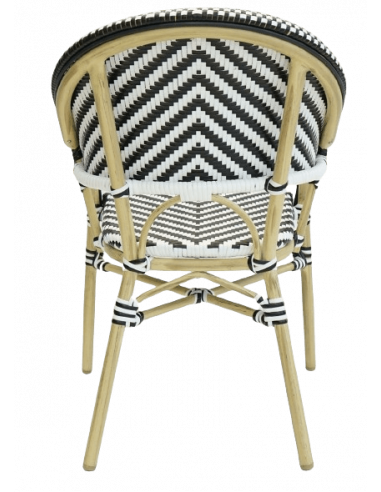 Projete seu terraço com estas cadeiras de alumínio plastificado. Fabricadas em rattan sintético 100%, estas cadeiras darão um toque de elegância ao seu terraço. Em branco e preto, uma combinação atemporal ideal para vestir o seu espaço exterior ao estilo parisiense.