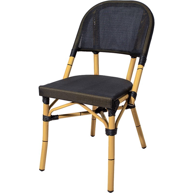 Cadeira empilhável, leve e durável, especialmente concebida para esplanadas de cafés e restaurantes. A sua estrutura em alumínio com acabamento em cana proporciona um design elegante e durável, enquanto o assento e o encosto em textura garantem conforto e fácil manutenção.