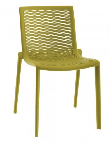 Cadeira modelo NET KAT desenhada por Josep LLuscà para uso interior e exterior. Injetada em polipropileno e fibra de vidro. Empilhável. Proteção contra raios UV. Peso líquido cadeira 3.60 kg