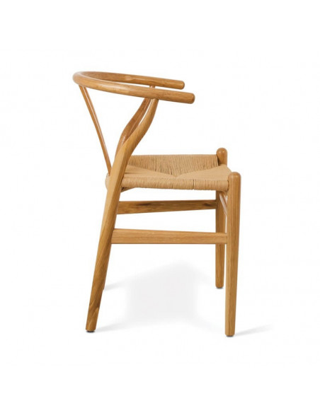 Material: Madeira maciça de carvalho com assento em corda vegetal (papel).