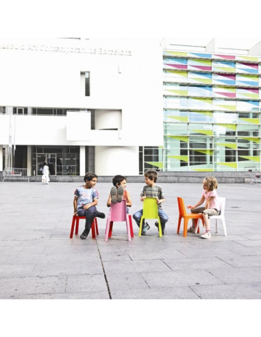 Cadeira infantil para crianças de polipropileno que pode ser utilizado no interior para casa, locais, brinquedotecas, creches, etc, e para jardim e esplanadas. Disponível em várias cores. A cadeira pode empilhar. Empilhável até 20 unidades com proteção contra raios UV.