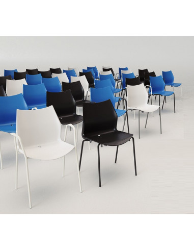 Cadeiras empilháveis de design moderno e atual que se adaptam a todos os ambientes: escritórios, salas de espera, conferências, salas de aula, escolas, etc., Estrutura metálica na cor cinza e estrutura disponível em várias cores.