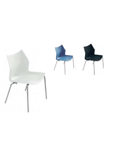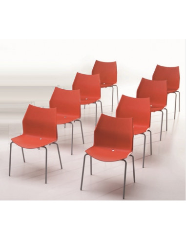 Cadeiras empilháveis de design moderno e atual que se adaptam a todos os ambientes. Disponível em várias cores. Estrutura metálica na cor cinza.