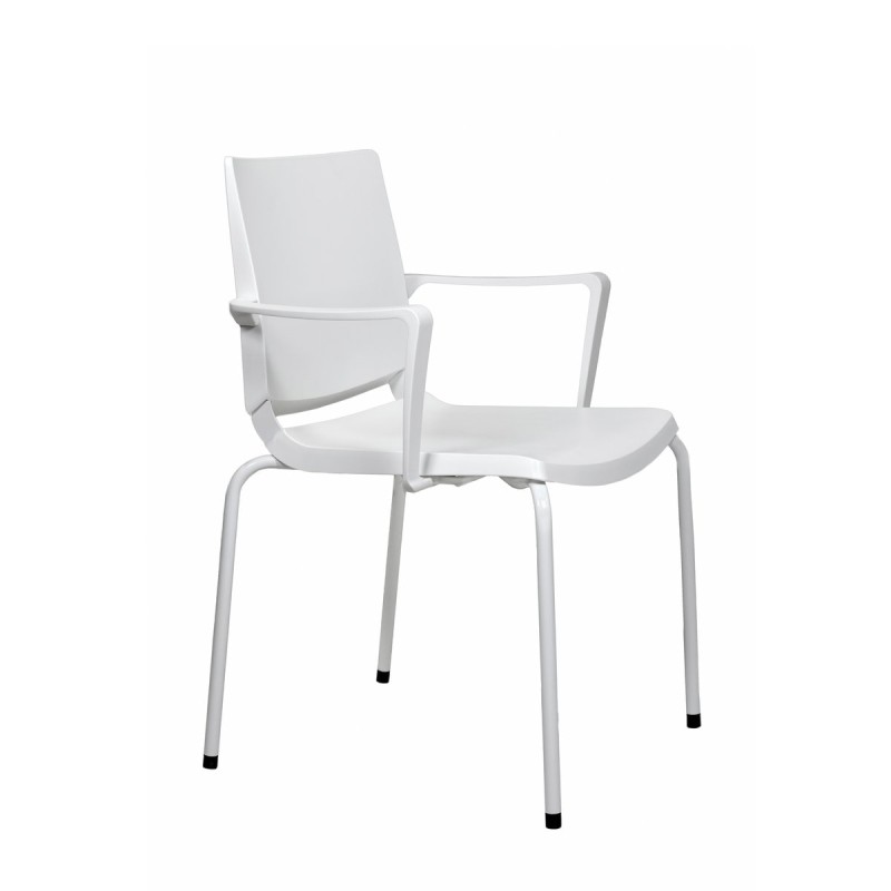 Cadeira empilhável de projeto polivalente de 4 pés, com braços, estrutura em metal com acabamento cromado. Encosto e assento em polipropileno, disponíveis em várias cores. Como opção, o banco pode estofar. Seu design de linhas puras, permitem que se enquadre em espaços tão diversos como uma sala de reuniões, um escritório ou sala de jantar de um restaurante. Ver jogo da cadeira sem braços e giro.