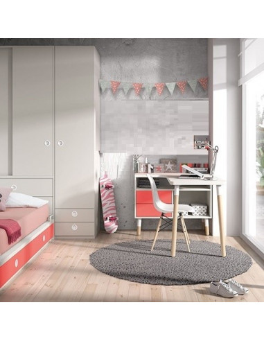 Secretária de projeto completa com armário e cômoda para a esquerda . Ideal para o quarto das crianças ou para montar um pequeno office em casa. Tudo o que você precisa em um só móvel. Uma ampla área de trabalho, 2 gavetas fechadas e buracos para guardar o material. Medidas 147x98cm. Altura 78cm O desktop está disponível em ampla gama de cores.