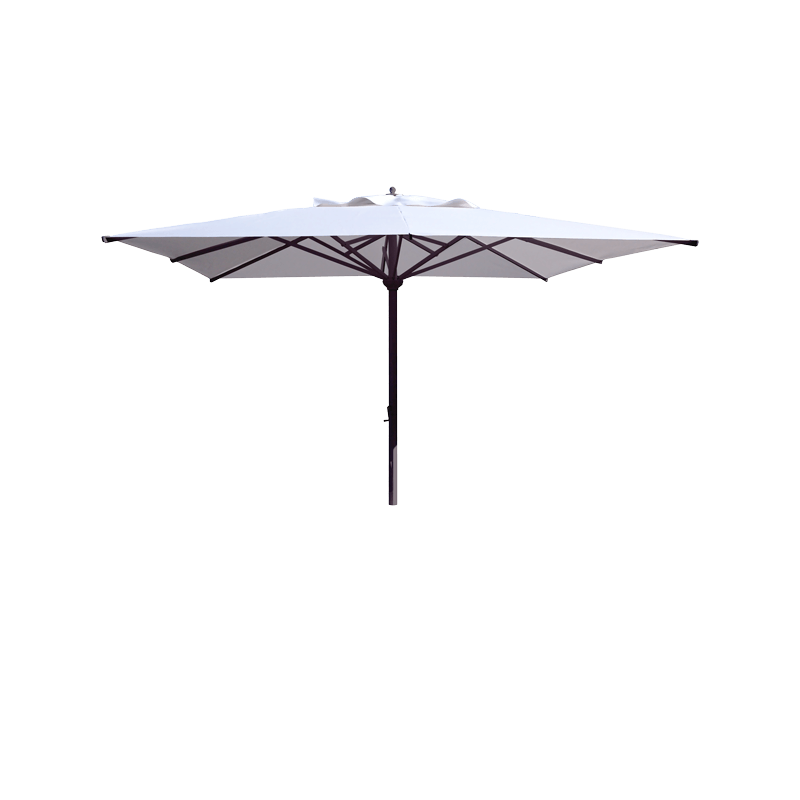 Guarda-chuva de alumínio quadrado de 3x3 m de alumínio pintado epóxi na cor branca. Também é possível solicitar o guarda-sol com estrutura na cor antracite sem custo adicional.