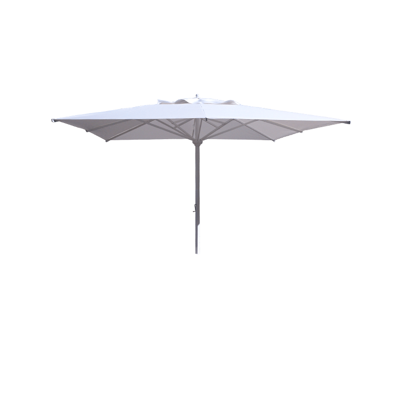 Guarda-chuva de alumínio quadrado de 3x3 m de alumínio pintado epóxi na cor branca. Também é possível solicitar o guarda-sol com estrutura na cor antracite sem custo adicional.