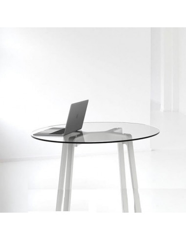 Tampo de mesa disponível em 2 acabamentos: vidro ou compacto fenólico.
