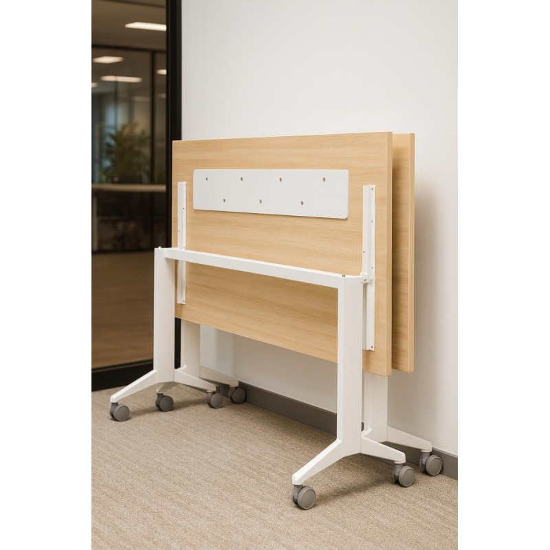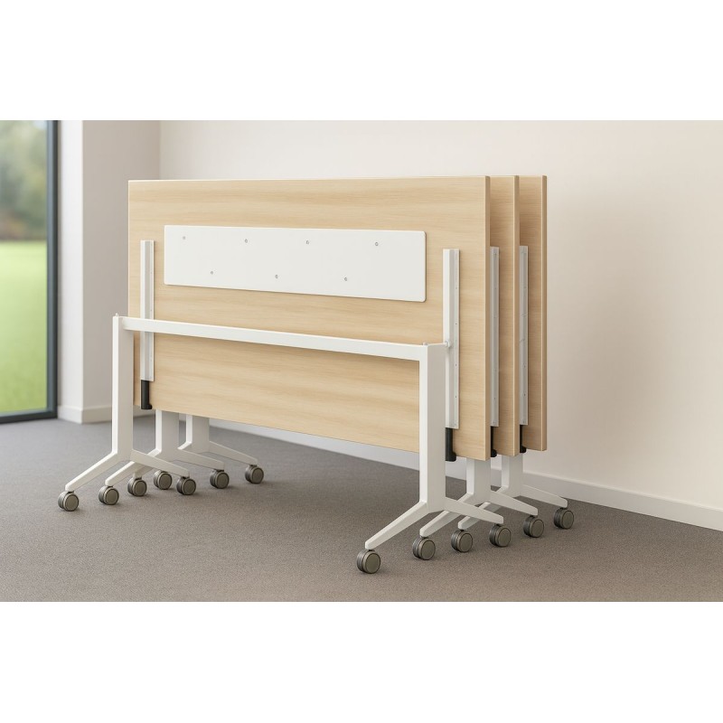 A mesa abatível CLAP é uma solução versátil e funcional para ambientes de formação, escritórios e espaços polivalentes. O seu sistema rebatível permite otimizar o espaço e facilitar o armazenamento.