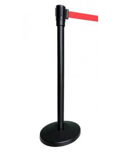 Poste separador e para sinalizar áreas, em aço inoxidável, disponível em preto ou cromado e fita extensível preta ou vermelha. Extensão de fita de 2 metros, tornando este posto muito adequado para demarcação ou gestão de filas.