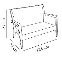 Sofá empilhável modelo Miami IPANEMA, fabricada em resina muito resistente e durável, reforçado com fibra de vidro, cor de chocolate. Medidas 128x77x89 cm de altura. Protecção raios UV, o que garante que a cor não esmoreça. O projeto simula o desenho da rota.
